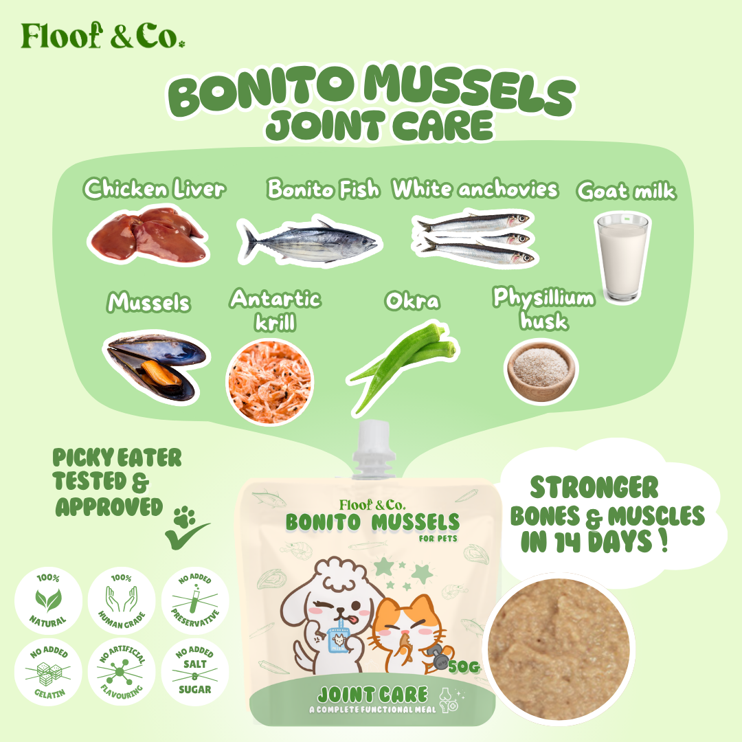 Our bonito mussel recipe contains high calcium ingrdients that can help boost your furkids muscle and joints. Perfect for super active that like to jump and run around!