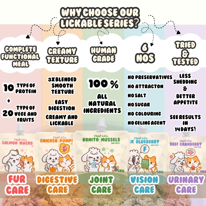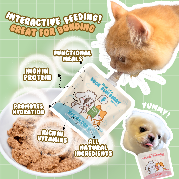 Each flavour has two types of protein, a variety of fresh vegetables and fruits! Its a complete balance meal for cats and a training treats for dogs!