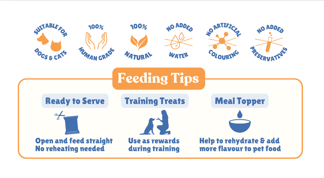 Chunkies are a great meal topper for pets as it contains natural au jus that can rehydrate and add extra protein to their kibbles or cooked meals!